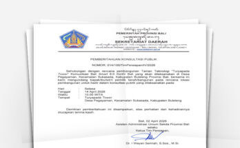 Pemprov Bali Laksanakan Konsultasi Publik Pengadaan Tanah untuk Pembangunan Turyapada Tower Kamis, 9 April 2026Jumat, 10 April 2026