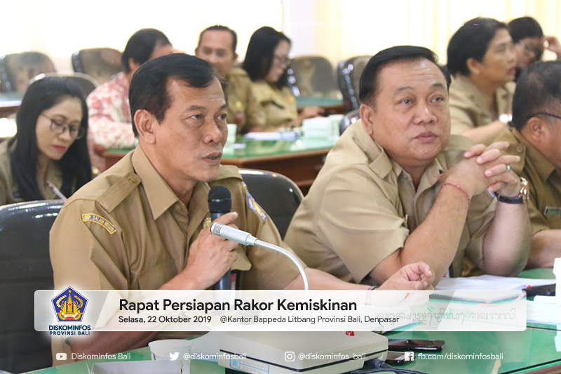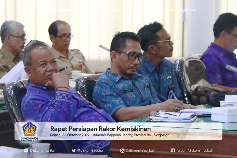 Selasa (22/10), Bappeda Litbang Provinsi Bali mengadakan Rapat Persiapan Rakor Kemiskinan dalam rangka menurunkan angka kemiskinan, Bertempat di Ruang Rapat Jempiring Bappeda Litbang Provinsi Bali, kegiatan rapat dibuka oleh Kepala Bidang Penelitian dan Pengembangan, I Nyoman Ngurah Subagia Negara didampingi oleh Putu Suyatna Yasa dari Universitas Warmadewa serta dihadiri seluruh Bappeda Litbang kabupaten di Bali dan Dinas Komunikasi, Informatika, dan Statistik Provinsi Bali.