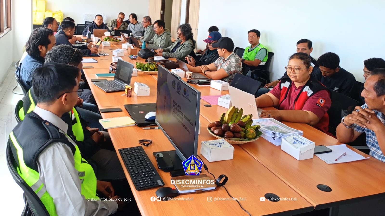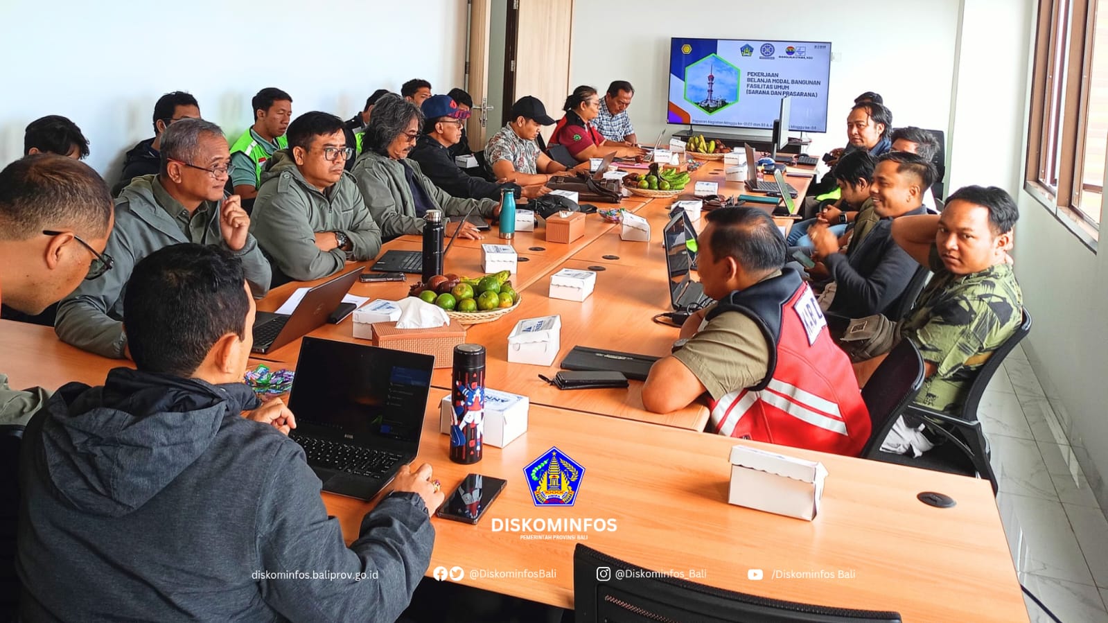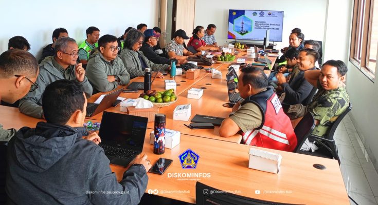 Denpasar, (31/7) — Dinas Komunikasi, Informatika, dan Statistik (Diskominfos) Provinsi Bali melalui Bidang Teknologi Informatika menggelar rapat evaluasi terkait progres pembangunan bangunan pendukung Menara Turyapada. Rapat berlangsung di Pusat Kendali Pemerintah Provinsi Bali dan dipimpin oleh Sekretaris Diskominfos, Gusti Ngurah Kama Wijaya, didampingi oleh Kepala Bidang Teknologi Informatika, I Gede Agus Arjawa Tangkas, dan Kepala UPTD Turyapada Tower, Novandika Dwipayana.