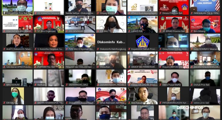 Senin (9/8), Dinas Komunikasi, Informatika, dan Statistik Provinsi Bali melalui Bidang Informasi dan Komunikasi Publik Seksi Layanan Pengelolaan Informasi Publik mengadakan Rapat finalisasi website pada menu dimasing-masing stand virtual peserta Pameran Pembangunan Provinsi Bali Tahun 2021 secara virtual yang dihadiri peserta Pameran yang terdiri dari OPD dan mitra kerja/binaannya di lingkungan Pemerintah Provinsi Bali, Kabupaten/Kota se-Bali, PERUSDA Provinsi Bali, PTN, PTS, Instansi Vertikal, Perbankan, Perajin Binaan Dinas Perdagangan dan Perindustrian, Binaan Dinas Koperasi dan UKM Provinsi Bali, dan Binaan DEKRANASDA Provinsi Bali.