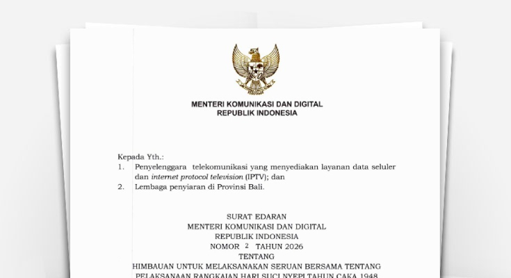 Surat Edaran Nomor 2 Tahun 2026 Tentang Himbauan Untuk Melaksanakan Seruan Bersama Tentang Pelaksanaan Rangkaian Hari Suci Nyepi Tahun Caka 1948 di Provinsi Bali Tahun 2026