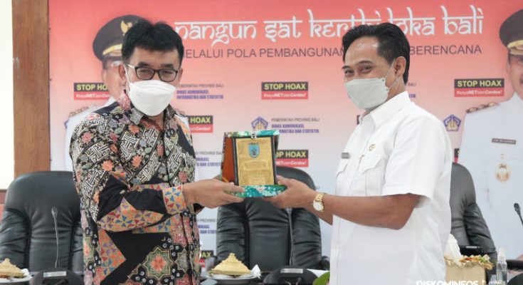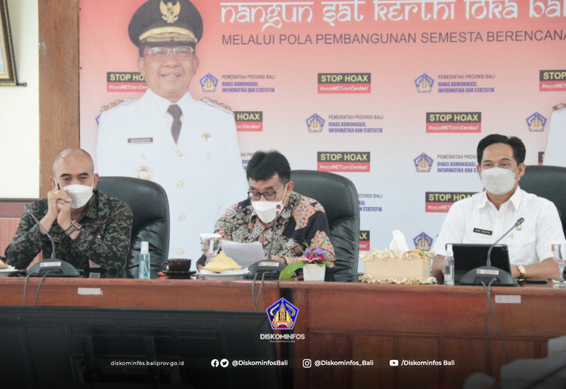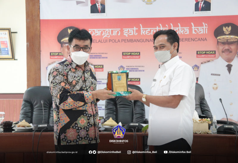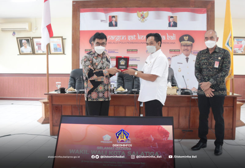 Rabu (9/2), Dinas Komunikasi, Informatika, dan Statistik (Diskominfos) Provinsi Bali menerima Kegiatan Press Tour dari Pemerintah Kota Salatiga yang bertempat di Ruang Rapat Sandat Diskominfos Provinsi Bali. Rombongan dipimpin oleh Wakil Walikota Salatiga Muhammad Haris yang dalam sambutannya mengatakan tujuan kegiatan untuk meningkatkan kompetensi serta pengetahuan kehumasan dan protokol, sekaligus melaksanakan kegiatan Pembinaan dan Pengembangan Kemitraan Media (Press Tour) Tahun 2022 ke Pemerintah Provinsi Bali.