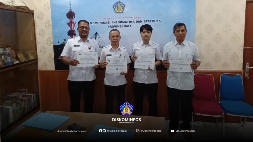 Sertifikat diserahkan kepada Made Widiartha dan Made Sudiarta dari Diskominfos Provinsi Bali, Made Wirajaya dari Inspektorat Daerah Provinsi Bali, serta Wayan Agustiawan dari RSUD Bali Mandara Provinsi Bali. Kegiatan ini diharapkan dapat semakin memperkuat kapasitas sumber daya manusia di lingkungan Pemerintah Provinsi Bali dalam mendukung implementasi perlindungan data pribadi sekaligus memperkuat keamanan informasi di lingkungan perangkat daerah.