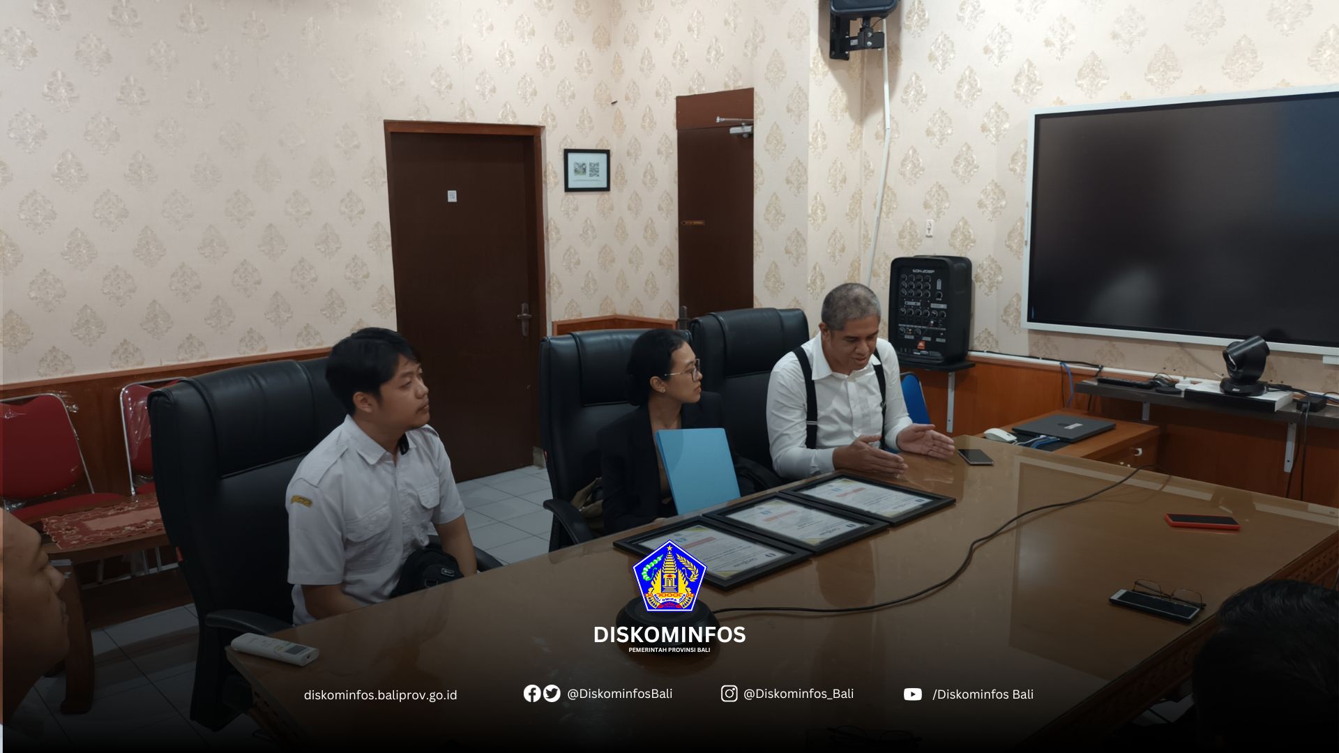 Denpasar — Sekretaris bersama Kepala Bidang Persandian Dinas Komunikasi, Informatika, dan Statistik (Diskominfos) Provinsi Bali menerima kunjungan perwakilan tim dari Lembaga Pelatihan Kerja Swasta (LPKS) Gerbang Perlindungan Data Pribadi (PDP) pada Rabu, 1 April 2026, bertempat di Ruang Jepun Diskominfos Provinsi Bali.