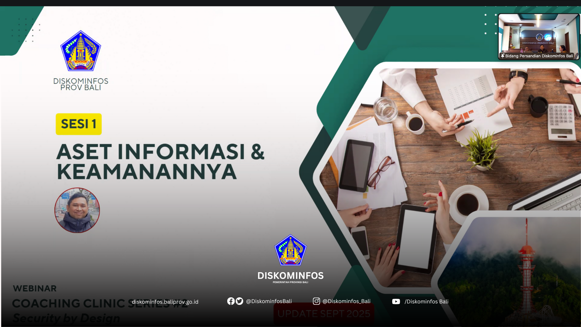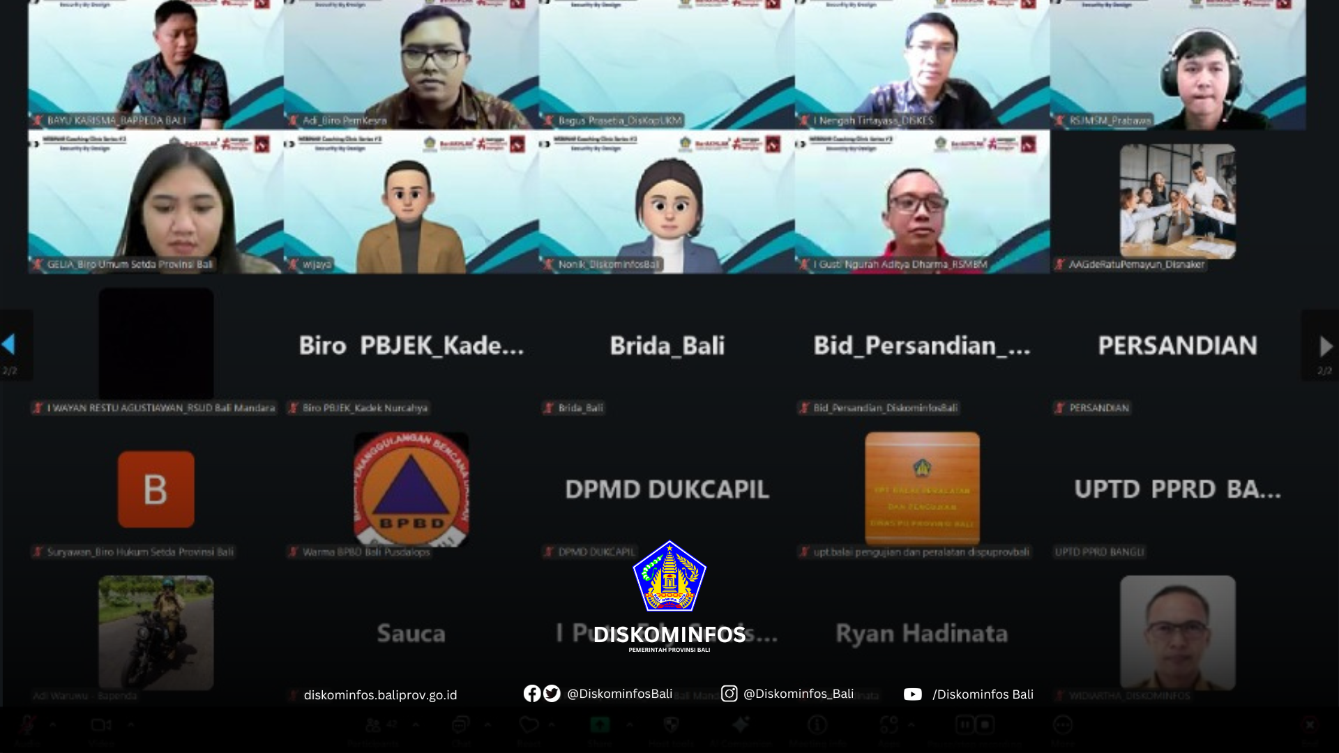 DENPASAR – Dalam rangka meningkatkan pemahaman konsep aset informasi, pentingnya pengamanan dan pemetaan aset informasi, Dinas Komunikasi, Informatika, dan Statistik (Diskominfos) Provinsi Bali melalui Bidang Persandian menyelenggarakan Webinar Coaching Clinic Series #2 dengan tema Security by Design, pada Jumat (19/9/2025), kepada Perangkat Daerah di Lingkungan Pemerintah Provinsi Bali sebagai Pemilik Aset Informasi.