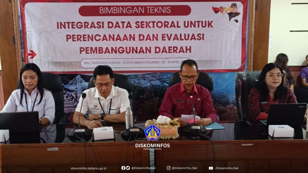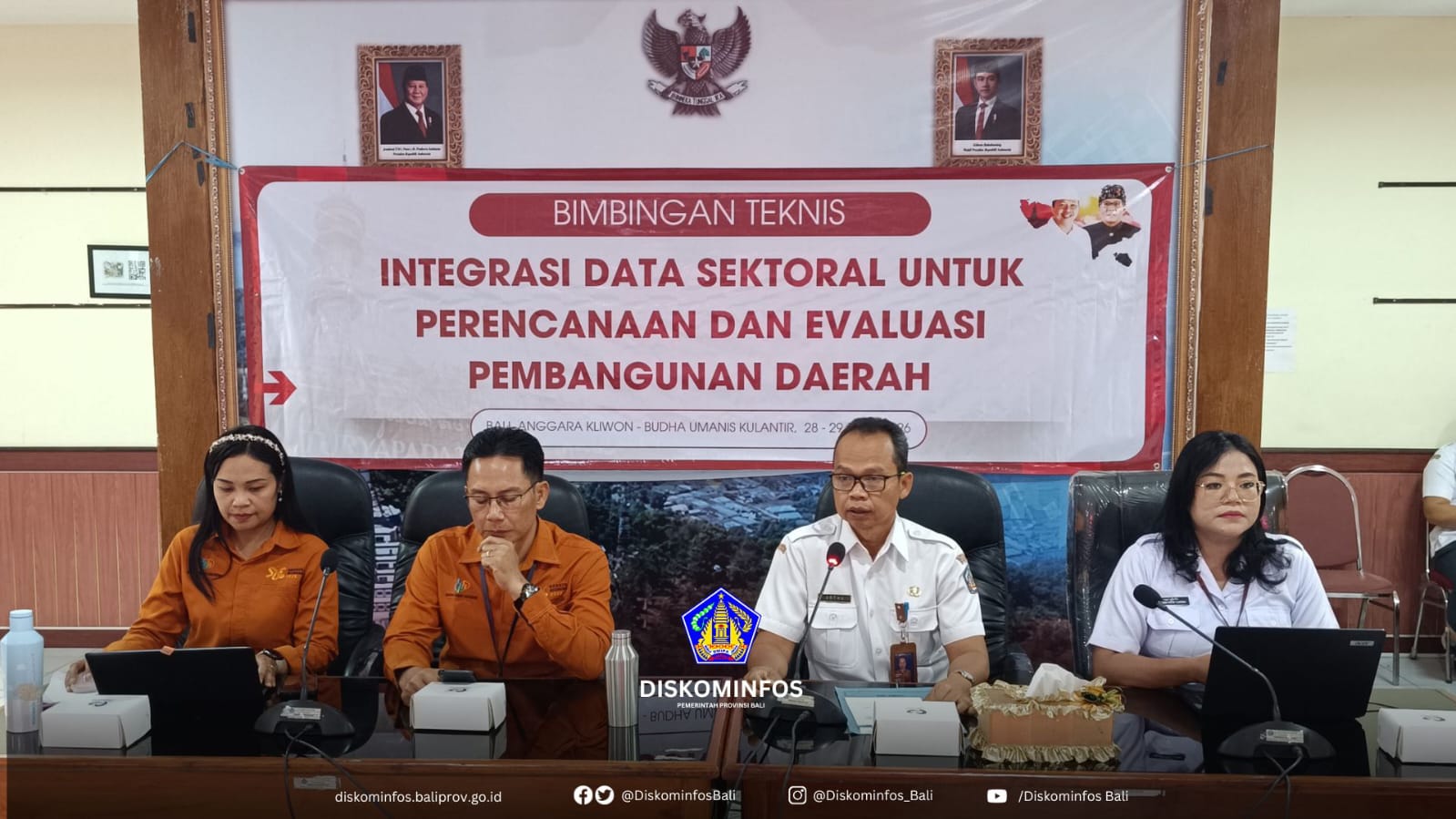Denpasar — Dinas Komunikasi, Informatika, dan Statistik Provinsi Bali melalui Bidang Statistik menyelenggarakan Bimbingan Teknis Integrasi Data Sektoral untuk Perencanaan dan Evaluasi Pembangunan Daerah yang dilaksanakan pada tanggal 28–29 April 2026, bertempat di Ruang Rapat Sandat Diskominfos Provinsi Bali, serta dihadiri oleh Perwakilan Perangkat Daerah dan Instansi Vertikal di lingkungan Pemerintah Provinsi Bali.